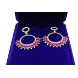 5.2ct Mozambique rubies, 1.2 ct white sapphire sterling silver earrings, 1.25" length |