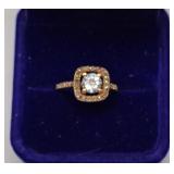 1.4ct aquamarine and diamond 14k rose gold over sterling ring approx. 7.5 size |