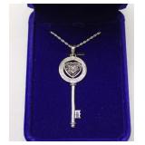 .50ct diamond black rhodium and sterling key pendant with chain, pendant is approx. 2.25"l |