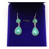 16.60ct emerald and sterling dangling earrings approx. 1.75"l |