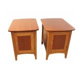 Pair of cherry finish 1 door lamp tables, good condition, structurally sound |