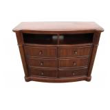 Contemporary 6 drawer media dresser, mahogany and banded |