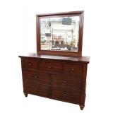 Contemporary mahogany finish dresser and mirror, 7 drawers |