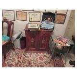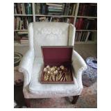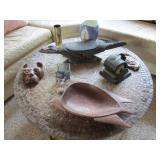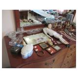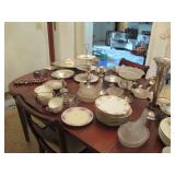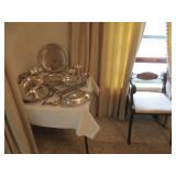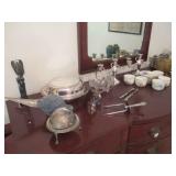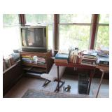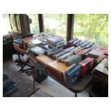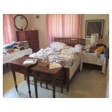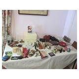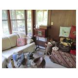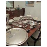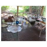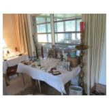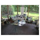 Sterling trays & more, Kindel mahogany bed set, jewelry, daguerreotypes, Empire chest, Sarouk & Kirman oriental rugs, mirrors, vintage tile top table, Victorian work tables, dining set, glass patio table, vintage walnut library table, sideboard, camel back sofa, African carvings, Chinese rug, lamps, pie crust table, Minton China, vintage clothes, lots of books, files, yard tools, linens & kitchenware. |