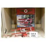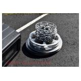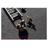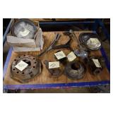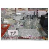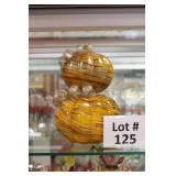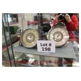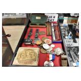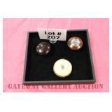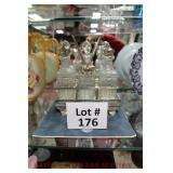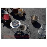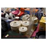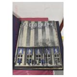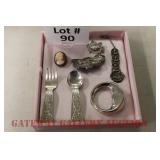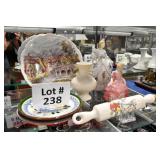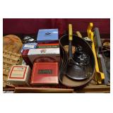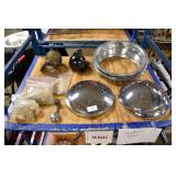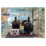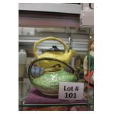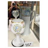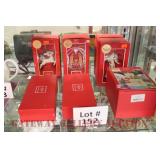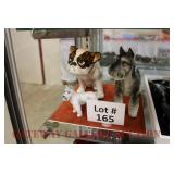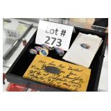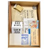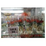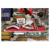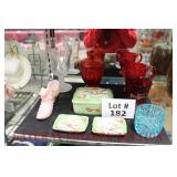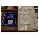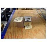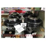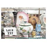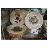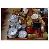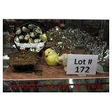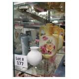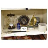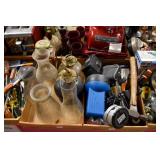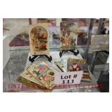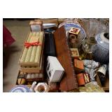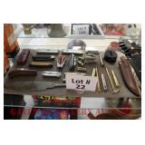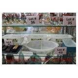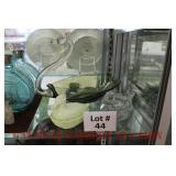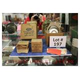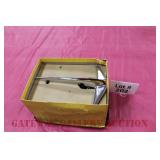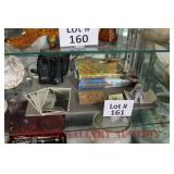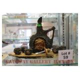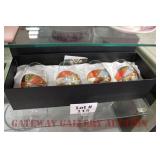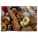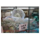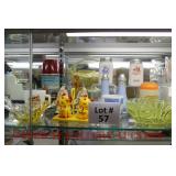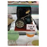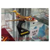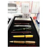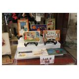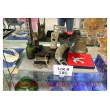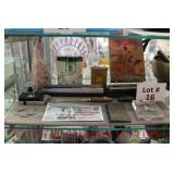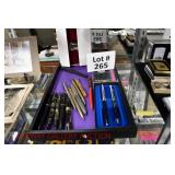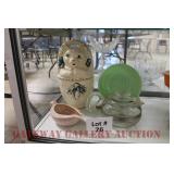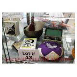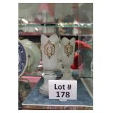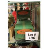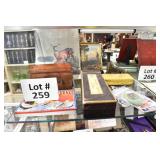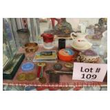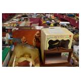 Showcase Catalog 1 Vintage Kitchen: Set of (4) Aluminum bowls (different colors); (2) Pyrex 1.5 qt juice pitchers; (1) Pyrex 2 qt juice pitcher 2 Hoosier Kitchen Canister: Glass sugar canister in green w/original lid and label 3 (2) Blue Glass Mason Canning Jars: 1858, zinc top lids, different sizes 4 (4) Carved Shore Birds: (2) white, (1) blue, (1) black/white (not signed on wood base) 5 Hammerhead Shark Sculpture: signed John Perry - plastic shark mounted on driftwood base 6 Great White Shark Sculpture: signed John Perry - resin shark mounted on driftwood base 7 14K Pens: (1) Cross, (1) Montblanc 8 18K Pens: (1) Waterman; (1) Aurora made in Italy; (1) other 9 (7) Desk Pens: includes Cross, Aurora, Walt Disney etc. 10 Shooter Marble: swirl (some chips, knicks) 11 Shooter Marble: swirl (some chips, knicks) 12 Costume Jewelry: (6) wristwatches, (2) pins 13 (2) John Perry Sculptures: resin seagulls mounted on drift wood base; resin dolphins mounted on drift wood base (both signed) 14 (2) Budweiser Advertising Signs: World Champion Clydesdale Team - (1) is missing it plastic cover 15 Bump Bump Cars: made by Mystery w/original box 16 Assorted Lot: paperweight; letter openers; foreign coins & currency; grove measuring tape; inkwell; Philip Morris tin; Peanut tin; Tarzan book, etc. 17 Tibetan Singing Bowls: Graduated set of (3); Zen book 18 Tibetan Bowls & Zen Books: singing bowl; circulation balls; (2) Zen books 19 Tibetan Singing Bowls: Graduated Set of (3) 20 Carved Pelican: mounted on driftwood, painted, not signed 21 Hatchet & (2) Knives: all with sheath 22 Pocket Knives etc.: (12) pocket knives (2 are not folding); bullet key chains; compass; bullet pens; etc. 23 (2) JLG Boom Lift Toys: both in orig. boxes 24 (2) Alarm Clocks: Westclox big ben; National Call 8-day alarm 25 Canon S2is Power Shot Camera: includes extra lenses and filters 26 Mantle Clock: battery operated, wood case, metal face 27 Dietz Lantern: red globe (repainted lantern) 28 Collectible Pen Display Box: removable tray, velvet lining, holds approximately 24 pens 29 Batman Memorabilia: playing cards, scrapbook, hot wheels batmobile, books, episode guide etc. 30 Tibetan Singing Bowls: Graduated set of (3) 31 Vintage Pheasant Tumblers: (7) 6.5"; (3) 3.25" 32 Vintage Pheasant Pitcher Set: pitcher; (6) 5"; (5) 3.75"; (1) 3" 33 Vintage Pheasant Pitcher Set: pitcher; (7) 5" 34 Vintage Pheasant Tumblers: (10) 6.25", (2) 5.75" 35 Vintage Pheasant Bar Set: Shaker; ice bucket & tongs (tongs as is); (12) shot glasses 36 Vintage Pheasant Drink Pitcher Set: pitcher w/stirrer; (4) 3.25", (4) 3.75" 37 Vintage Pheasant Pitcher Set: pitcher; (5) 3" 38 (2) Covered Turkey Carnival Bowls: amethyst, Smith Glass 39 (5) pcs. Blue Glass: Fenton hobnail basket; pair boy/girl bookends; open lace edge bowl; Bohemian glass blue cut to clear basket 40 Pop Culture: Backstreet Boys watch in orig. package 1999; Ronald McDonald watch in orig. package 1984; transformer watch; Star Wars Return of the Jedi Topps 1983 trading cards; Garbage Pail Kids 1986 trading cards; E.T. 1982 trading cards; Topps baseball cards; baseball legends tin 41 NRA Gun Care Kit: tool kit in leather zip organizer case 42 (4) Gun Clips: 9mm; (3) others 43 Pyrex & Glasbake: set of (3) Pyrex loaf pans; covered refrigerator dish (blue); Glasbak divided casserole 44 (3) pcs. Glass: duck on nest (custard glass, stamped M); Herters 1893 duck on nest (clear glass); art glass swan center bowl 45 Bottles & Jars: (2) Valley Bank & Trust co. bottle banks; Lancaster pharmacy bottle; Lightning jar; Sealfast jar; expectorant bottle; Scotts Whisky bottle w/label (as is); Lancaster bottle (as is) 46 (4) pcs. Lenox: Morning Dew butterfly figurine; pair candleholders & vase w/butterflies 47 (3) Rooster Covered Bowls: (2) painted milk glass (1 w/paint wear); (1) amber 48 (8) Chickens on Nest: large blue glass; (2) mini. Blue (Smith & other); (1) mini. Clear glass; (1) Imperial glass green; (1) medium pink glass; (1) medium purple slag; (1) Westmoreland mini. Milk glass 49 Friends of NRA Sculpture: Paratrooper #11020 by Rick Terry - resin figurine on wood base 50 Friends of NRA Sculpture: Big Game Sponsor Series Cape Buffalo #4013 - resin figurine on base 51 Friends of NRA Sculpture: Big Game Sponsor Series The Revered White Tail #0831 - resin figurine on base 52 Friends of NRA Sculpture: Big Game Sponsor Series Unbearable Itch #06946 - resin figurine on base 53 Friends of NRA Sculpture: Colonel Theodore Roosevelt #3350 by Rick Terry - resin figurine on base (eye glasses broken but can be repaired) 54 Friends of NRA Sculpture: Bison figurine by Bradford Williams w/NRA commemorative knife of the year #401/1100 55 Jar of Marbles: assorted, about half full 56 Friends of NRA Sculpture: Trophy Ridge, 356/1050, resin figurine on base 57 Vintage Kitchen: Roy Rogers thermos; milk glass shakers; blue glass shakers; amber glass cruet; Ranger Joe mug; tiger mug; yellow glass bird dish; pair clown shakers; pair plastic cat shakers; (2) green glass dishes; Ovaltine shaker 58 (9) Peanut Butter Glasses: (8) apples; (1) scotty dogs 59 Barware: decanter w/ (6) matching shot glasses, resin made to look like wood, w/wood base 60 John Wayne Sculpture: Galloping Thunder, John Wayne Tall in the Saddle, by Knowles, no. A6611, resin, (1) horse rein broken 61 Brass & Wood Carving: Morels Under Glass, carved mushrooms, wood base, glass dome; brass peacock 62 Blown Glass Vase: applied cherries & flowers, flower has (1) petal broken, ruffled top, measures approx. 6.25" tall 63 Glass & China: yellow depression glass cake plate; Imperial Glass center bowl; Japan teapot; covered candy; spooner 64 Costume Jewelry: (5) wristwatches; pocket watch; pins; cufflink; bracelet 65 Assorted Lot: NRA shot gun shell shot glasses; hula girl; razor; shaving brush; cast metal Amish figurines; glass tea set; novelty frog; mini. Butter press; (2) armadillo figurines; hanging weight etc. 66 Danbury Mint Redskins Collectible: team bus w/orig. box 67 D