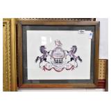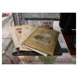 Wall Catalog 1w (2) Diecast Airplanes: ERTL Ford Tri motor humble, in orig. box; SpecCast Exxon model 18 twin beach, in orig. box 2w Carved Wood Giraffes: approx. 28" tall 3w Doll: Ideal, plastic face, sleepy eyes, open mouth, teeth, she was talker, does not work anymore 4w (2) Exxon Diecast Airplane Banks: SpecCast, (1) F-4U-1 Corsair fighter; P-51D Mustang (both in orig. boxes) 5w (2) Diecast Airplanes: SpecCast Exxon F-86 Sabre jet; Texaco 1932 Northrup Gamma, ERTL 6w (2) Pcs. Amberina Art Glass: large footed center bowl, crackle glass base, approx. 15.5" diameter; blown tankard pitcher 7w 1937 Dealer Showroom Book: 1937 Ford, has features, safety, engine info, components, accessories, financial plans, testimonials, etc., second part of book is for Lincoln, engine assembly line photos, etc., in original binder, one of leather handles is broken 8w Budweiser Advertising Clock: pocket watch, plastic, king of beers 9w Budweiser Light: world champion clydesdale team 10w Vintage Framed Print: cherubs with fruit 11w Framed Portrait: colonial man, ornate frame 12w Still Life Print: framed 13w Print: Grand Temple of Philae, matted & framed 14w Framed Nude: backside, matted & framed 15w Framed Etching: print of etching, tourist at temple 16w Planter's Clock: electric w/wood case 17w Pair of Plantation Prints: matching frames 18w Pair of Plantation Prints: matching frames 19w Ford Radio: model F-1440, correspondence about its refurbishment, original vibrator, has antenna 20w Wood Carpenter's Box: no tools, rope handle 21w Lenox Flatware Set: Esquire pattern, 65 pcs., in original box 22w Set of (4) Hubcaps: Studebaker 23w Car Radio: Studebaker, no date 24w Car Radio: Studebaker, 1952 25w (2) Gun Receivers: shot gun 12 ga. Long tom; 22 cal., JC Higgins short long, model 42 26w Studebaker Window A/C Unit: green, w/bracket 27w Golden Pheasant Litho Print: Gibson publisher, framed & matted, great colors 28w Oil on Canvas: portrait of man, canvas has some paint chipping and a lot of crackling 29w Watercolor: Mount Vernon, framed & matted 30w Brian Hoover Watercolor: signed, framed & matted 31w Framed Print: Joshua Henshaw II, by John Singleton Copley 32w Watercolor: Weber, framed & matted 33w PA State Seal: G. J. Seidel, 408/1000, framed & matted 34w Wall Mirror: inlay frame 35w (2) Paintings: oil on board, K.M. Johnson, native American on horse; oil on canvas, signed L. Cornett '87, still life native American scene 36w Oriental Rug: approx. 44" x 2' 37w (2) Family Crests: Coddington, Chambers 38w Wash Board: Columbus Model V 39w (2) Family Crests: Washington, Watrous 40w Still Life Print: double matted, ornate frame 41w Decorative Wall Fan: painted peacock & cherry blossoms 42w Oil on Canvas: rancher w/cattle, unframed, some damage to canvas 43w Print on Canvas: Mademoiselle Dubois, framed 44w Wall Mirror: art nouveau frame 45w Still Life Print: w/ornate frame, similar to 40w 46w Portrait Print: Filipino Lippi, portrait of a youth, ornate frame 47w Large Tole Painted Tray: has some paint wear to edges, some scratches 48w Wall Mirror: painted frame 49w Shaving Mirror: wood frame, carved flower at top 50w Quilt: Thanksgiving theme, applied pumpkins & turkeys, embellished w/zigzag ribbon 51w Oriental Rug: approx. 10' x 8' 52w Oriental Runner: approx. 12' x 31" 53w Oriental Rug: made in Iran, approx. 9' x 75" 54w Oriental Runner: approx. 6' long 55w Oriental Rug: approx. 10' x 7' 56w Oriental Rug: approx. 7' x 5' 57w Wall Clock: fashion clock, highly inlayed, scroll base, missing (1) small pediment finial 58w Seth Thomas Regulator: 30-day 59w Cuckoo Clock: pheasant, feathers, pinecones, pinecone weights 60w Barometer/Thermometer/Hydrometer: w/clock 61w Cuckoo Clock: dancing people, birds, leaves, pinecone weights 62w Cuckoo Clock: small size, bird on top, 1' x 8", pinecone weights 63w Cuckoo Clock: dark walnut, birds & leaves, marked West Germany, pinecone weights 64w Cuckoo Clock: marked West Germany, deer, guns, rabbit & pheasant, hunting bag, hunting bag Chiemsee, pinecone weights 65w Cuckoo Clock: made in Germany, modern, small size 12" x 8", bird & leaves, pinecone weights 66w Cuckoo Clock: Germany, birds w/baby bird in nest, pinecone weights 67w Cuckoo Clock: Germany, bird & nest, pinecone weights 68w Cuckoo Clock: stag, guns, rabbit & pheasant, horn, hunting bag, pinecone weights 69w Cuckoo Clock: small size, bird & leaves, pinecone weights 70w Barometer/Thermometer/Hydrometer: made in England 71w Cuckoo Clock: 3 birds, leaves, brush painting, pinecone weights 72w Cuckoo Clock: pheasant, pinecones, leaves, painted, pinecone weights, pendulum, one chain is off the cog, some numerals missing on face 73w Cuckoo Clock: small size, 2 birds, leaves, 14.5" x 10", pinecone weights 74w Federal Style Mirror: round, eagle on top 75w Wall Mirror: wood frame 76w Frame: decorative 77w Portrait of Girls: diamond, oak frame, matted, some water damage 78w Wall Tapestry: cherub fountain scene, approx. 62" x 52" 79w (2) Oil Lamps: both w/chimneys 80w Umbrella Holder: Asian motif, unmarked 81w Store Jar: large, 5 gallon 82w Stoneware Jug: no name, brown glaze 83w Toleware Tray: oval, chipping to paint on face, some minor scratching 84w 2-Gallon Jug: chip at lip, chips around rim, brown glazing at top, blue 2 on front 85w Water Jug: 3-gallon Crisa, made in Mexico 86w Student Globe: Replogle 87w (2) Exxon Diecast Airplane Banks: SpecCast Beechcraft D-17, in original boxes 88w Weller Pottery Vase: green glaze, approx. 13.5" tall 89w Budweiser Advertising Tray: 100th year anniversary, 1976 90w (3) Longaberger: welcome home combo w/box; 1997 snowflake combo; 1998 med. Market 91w Oil Lamp: decorative pedestal w/flower, chimney 92w Serving Tray: Greek gods on horses