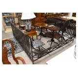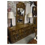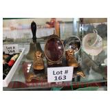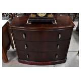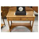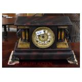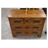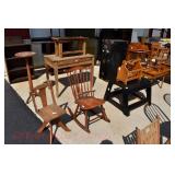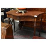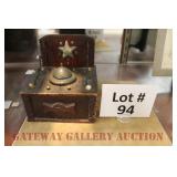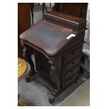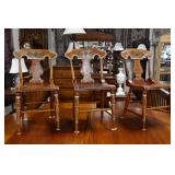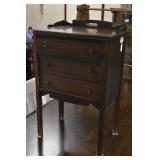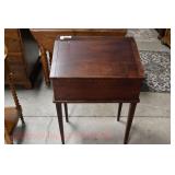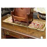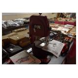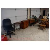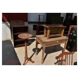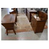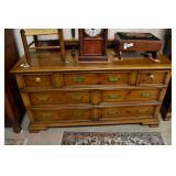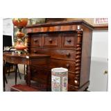 Furniture Catalog 1f Ford Dealership Radio Display: showroom display that demonstrates the Ford dashboard dial radio, display is wood lacquered w/cream and green, V8 emblem on dial, external antenna, paint chipping & wear 2f Federal Style Chairs: armchair; ladies chair, both have inlay on back panel with wood and mother of pearl 3f Tilt Top Table: standard chair of Gardner, Hitchcock style painting 4f Oriental Runner: approx. 8' x 2.5' 5f Cabinet Radio: Philco, model 3925, speaker screen on front has some deterioration 6f School Desk: tilt top, leather inlay on tilt top, opens to 8 cubbies, on each side 4 drawers 7f Umbrella Stand: Asian motif, 2' tall 8f Parlor Lamp: hand painted shade & double base, electrified 9f Game Table: string inlay 10f Empire Chest: curved columns, tiger maple front 11f Jewelry Chest: 6 drawers, side doors 12f Pair Wood Candle Holders: approx. 24" tall 13f Miniature Bench: approx. 14" tall x 6.5" tall x 7" wide 14f Sideboard: paint decorated 15f Wall Mirror: quiver & arrows details on top, olive leaves 16f George Brown Bristol CT Clock: wood case, reverse painted face, pendulum & key 17f Empire Chest: veneer removed from top, tiger maple veneering on rest 18f Corner Hutch: 3 shelf over 1 door, feet have damage 19f RCA Victrola: Victrola Talking Machine on inside of lid, works 20f Hitchcock Style Tea Cart: drop leaf 21f Corner Chair: shield w/turned column back, upholstered 22f 6-Gallon Crock: brown & white 23f Oak Dinette Set: 2 captains chairs, 4 straight chairs, arrow backs, 1 board 24f Grandfather Clock: battery operated 25f 2 Candle Holders: wrought iron, tri-footed, graduated set 26f Walnut Gingerbread Clock: reverse painted glass, refinished 27f Burl Chest of Drawers: empire style, some veneer missing 28f Robert Treate Hogg Handmade Clock: made in 1958 for Jessie Tyler from Mary Cross, has paperwork on Robert Hogg, ship & mood dial, brass face, pendulum, walnut & burl, Chippendale style, not weighted clock 29f Marble Top Candle Stand: green marble, modern 30f Asian Table Lamp: ceramic 31f Scalloped Stand: oak, 1 shelf 32f Oriental Rug: approx. 10' x 13' 33f Pair of Chairs: spoon feet, upholstered 34f (3) Decorated Chairs: shield back, painted 35f Banquet Table: cherry, inlayed 36f Blanket Chest: pine, w/till, refinished 37f Table Lamp: Danish Modern 38f Alabaster Lamp: HEAVY, no shade, white alabaster, approx. 30" tall 39f Chest of Drawers: Carolina, 5 drawers, matches 40f, 41f, 42f 40f Pair End Stands: Carolina, matches 39f, 41f, 42f 41f Bed: headboard, footboard, rails, Carolina, matches 39, 40f, 42f 42f Triple Dresser: 3 over 2 over 2, Carolina, matches 39f, 40f, 41f 43f Table Lamp: brass, Asian 44f Table Lamp: brass, Asian 45f Tiger Maple Grandfather Clock: made by James Small, Shippensburg, has original bill of sale, w/key 46f 3-Gallon Crockery Dispenser: 3 in crown, blue decoration, w/lid 47f Porcelain Glass Chest: 2 drawer, walnut 48f Mantel Clock: paint loss, etc. 49f Bernhardt Chest of Drawers: 3 drawer, modern 50f Marble Top Stand: grey marble 51f Mahogany Stand: beaded edge, 2 tiered 52f Tilt Top Stand: mahogany 53f Table Lamp: Asian motif 54f Mahogany Stand: inlayed, Hepplewhite style 55f Duncan Phyfe Stand: center turned column, oval 56f Chippendale Seat: upholstered, claw & ball foot 57f Pedestal Stand: round top 58f Corner Shelf: modern 59f Eterge: 5 shelves 60f Corner Shelf: modern 61f Bed Frame: king size, wrought iron 62f Pair Rugs: approx. 55" x 34.25" 63f Display Cabinet: 5 shelves, 2 side doors, modern, mirrored back 64f Display Cabinet: 3 shelves, 4 doors, mirror back, lighted 65f Gun Cabinet: cherry, holds 11 guns, 2 glass doors, over 3 drawers, 2 side doors 66f Dome Top Box: plastic handles, hole in back, refinished 67f Butter Print Wall Stand: oak, 1 drawer, 1 shelf 68f Mantel Clock: wood case 69f Wash Stand: 2 drawer, turned leg, splash back 70f Slant Front Desk: pine 71f Rock Maple Magazine Rack: heart cutouts 72f Impzria Dresser Tapestry: approx. 14" x 38" 73f Ethan Allen Desk: double pedestal, cherry, glass top 74f Chestnut Stool: refinished 75f Drop Leaf Table: oak, 1 leg has some splitting, some other wear 76f 5-Gallon Jug: white & brown 77f Chair: comb back 78f Oriental Rug: lambs wool, India, oval, approx. 55" diameter 79f Bern's Style Writing Rocker: rush seat, refinished 80f Pair Comb Back Chairs: modern, Temple Stewart 81f Extension Table: 5 boards, turned legs, half turned spindle inserts, mahogany 82f Pair Table Lamps: black marble 83f Triple Dresser: Mediterranean style, 3 over 3 over 3, w/mirror, matches 84f 84f End Stand: Mediterranean style, matches 83f 85f Beveled Edge Mirror: tilted side panel 86f Oak Cabinet: 3 shelves, 1 door, modern 87f Gingerbread Clock: refinished, Gilbert 88f Burl Veneer Chest of Drawers: some veneer loss, Empire style 89f Area Rug: approx. 25" x 46", fringe cut 90f Child's Chair: basket weave seat 91f Mantel Clock: reverse painted glass, 8-day, Ansonia 92f Needlepoint Footstool: empire style 93f Drexel Triple Dresser: 3 over 2 over 2, w/mirror 94f Area Rug: approx. 47"x 28", fringe cut 95f Magnavox TV: flat screen, 42" 96f Chest of Drawers: 4 drawer, bracket feet, brass hardware w/eagle 97f Crockery Jar: brown glaze 98f Planter: white, swirl pattern 99f Pine Shelf: 6 shelves, modern 100f Winchester Silverado Safe: push button combination, has original bill of sale 101f Folding Screen: modern 102f End Stand: 1 shelf 103f Power Recliner: cup holder 104f End Stand: spoon foot, mahogany 105f Rocker Recliner: cup holder 106f Mahogany Stand: drop leaf, gate leg 107f Shield Back Chair: upholstered 108f Table Lamp: brass 109f End Stand: 1 shelf, dark spot on top, refinished 110f Victorian Loveseat: upholstered 111f Area Rug: Chinese, wool, Cheng Chu, approx. 30" x 53.5" 112f Recliner: wing back 113f Table Lamp: Asian 114f End Stand: mahogany, 1 drawer, inlay legs 115f Wingback Chair: upholstered, claw & ball foot 116f Office Chair: adjustable 117f Butter Bowl Stand: has been repaired 118f Pair Rug