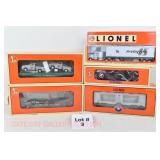 7 Modern Lionel New OB: St Louis RR Club: 52371 NYC Flat/Fire Engine #1 Tractor Trailer, 52392 Hood’s Milk Tractor Trailer/PRR Flat, 52258 UP Flat/UP Tractor Trailer, 52290 UP Flat/UP Tractor/Tanker Trailer