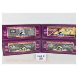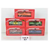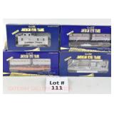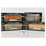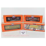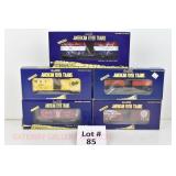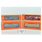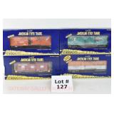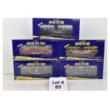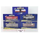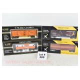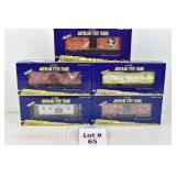 65 Modern American Flyer New OB: 48391 Timken,78 IC, 66 Jersey Central, 62 Burlington Boxcars; 48735 Burlington E/V Caboose
