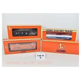 4 Modern Lionel New OB: 52113 1997 TTOS Genesee & Wyoming 3 Bay Covered Hopper, 52121 1997 TTOS Mobilgas Tanker, 52172 1999 TCA L&N Boxcar, 52198 TCA Frisco Boxcar
