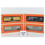 12 Modern Lionel New OB: Chicagoland LRRC: 52148 Santa Fe/REA Action Car 6th Car Produced, 52171 UP Uncle Herb Action Car 7th Car Produced, 52178-559 Burlington Uncle Herb Action Car 9th Car Produced, 52179-560 ACL Uncle Herb Action Car 10th Car Produced