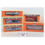 13 Modern Lionel New OB: Department 56: 52139 Caboose, 52157 Holly Bros Tanker, (2) 52096 Snow Village Boxcar, 52254 Holiday Gondola