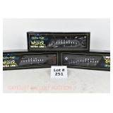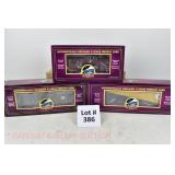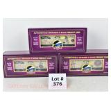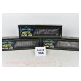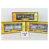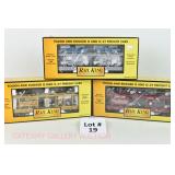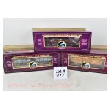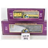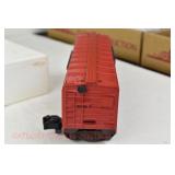 380 MTH: 20-93130 MTHRRC 2003 UP Dbbl Dr Boxcar, 20-98400 MTHRRC 2004 PRR Coil Car, 20-93239 MTRRC 2005 Santa Fe 50’ Hi-Cube Boxcar OB/Mailing Cartons