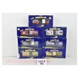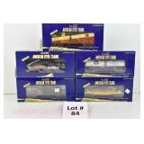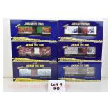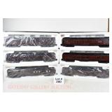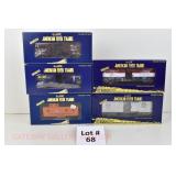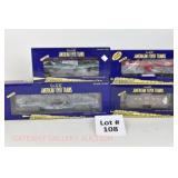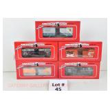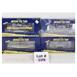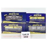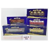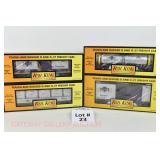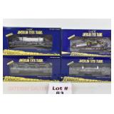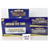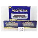 72 Modern American Flyer New OB: 48549 UP Gon/Canisters, 48619 UP Hopper, 48525 Burlington Gon/Canisters, 48630 Milw 3 Bay Covered Hopper, 48639 CN 3 Bay Cylindrical Hopper
