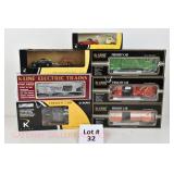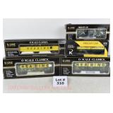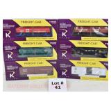 33 K-Line New OB: K-2625-031 Kennecott Copper Motorized Handcar (NO TRAILER), K7902 Western Maryland Boxcar, K-7612 Grand Trunk Reefer, K-7614 Monon/FGE Insulated Boxcar