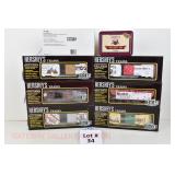 34 K-Line New OB: Hershey’s Trains: K646702 Cocoa Bean Boxcar, 03 100th Anniv Boxcar, 06 Hug’s/Almonds Boxcar, 08 Xmas Boxcar, 09 ‘95 Xmas Boxcar, 624502 Hugs and Kisses Hopper, Ertl 1950 Hershey’s Chevy Van
