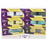 42 K-Line S Gauge New OB: K511-007 NYC, 005 GN, 002 Timken, 009 B&O, 017 RDG Boxcars, K-5154014 "O" gauge PRR York Fair Boxcar