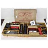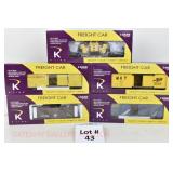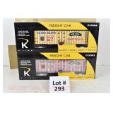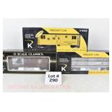 43 K-Line S Gauge New OB: K511-010 L&N, 004 MKT, 018 UP Boxcars; K511-033 B&O Flat/Road Roller, K511-023 PRR B/W Caboose