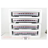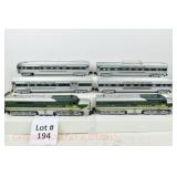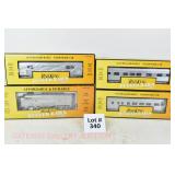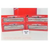 79 Modern American Flyer New OB: (4) Santa Fe Streamlined Passenger Cars: 48945 995 Concho Dining Car, 48946 996 Acoma Coach, 48948 997 Navajo Vista Dome, 48947 998 Vista Canyon Observation
