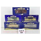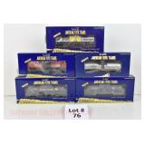76 Modern American Flyer New OB: (5) Tank Cars: 48411 Gilbert Chemicals, 08 Sunoco, 15 Hooker, 21 Phila Quartz, 18 Protex