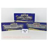 25 MTH New OB: (2)20-96039 TTOS 2001 SF Tanker, 20-94028 MTHRRC 2002 Cantor Reefer, 20-93248 MTH 25th Anniv 40’ Boxcar