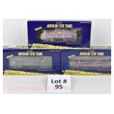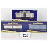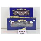 84 Modern American Flyer New OB: (3) Tankers: 48410 GATX Tank Train, 12 Alaska, 13 Diamond Chemicals; 48354 SP Boxcar, 48 NP Boxcar