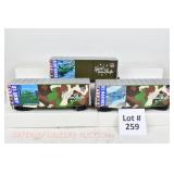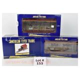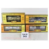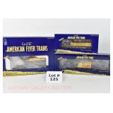 61 Modern American Flyer New OB: 48404 US Army Tanker, 49009 AFL Flat/Derrick, 48491 TCA BN Flat/BN America Vans
