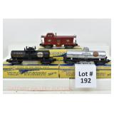 343 Rail King: (3) MTHRRC: 3074223 2005 Boxcar OB/Mailing Carton, 30-7779 Steel Caboose, 30-7380 Tanker, 30-7426 1998 Holiday Boxcar OB