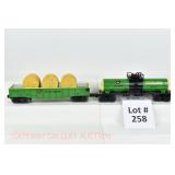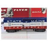 70 Modern American Flyer New OB: 49015 West Side Lumber "Moe And Joe" Operating Lumber Car, 49054 Great Northern Log Dump Car