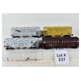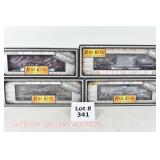 341 Rail King: Die Cast Rolling Stock: 30-8103 PRR Tanker, 8401 PRR Boxcar, 8318 PRR Depressed Center Flat/Transformer, 8701 C&O Stock Car OB