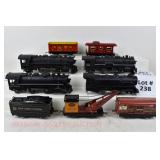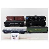 351 Rail King: (6) Rolling Stock Without Boxes: 30-8401 PRR DieCast Boxcar, 189453 PRR 4 Bay Hopper/Load, 7357 Reading And Northern 4 Bay Hopper/Load, 30-79118 Operating Reading Hopper W/Disappearing Coal Load, 30-7213 B&O Gon/Scrap Load, 30-7503 ATSF 4 Bay Hopper