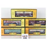 338 Rail King: 30-76153 Isaly’s Flat/Trailer, 7422 Arrow Stapler Box Car, 4232A BNSF Gon/Crates, 7333 P&WV Tanker, 74161A P&LE 6464 Boxcar