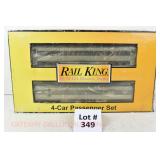 349 Rail King: 30-69133 4 Car 60’ Santa Fe Madison Car Set; Includes Baggage, 2 Coaches, Solarium Car W/Shopworn Set Box