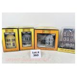 360 Rail King: 30-9046 Blue/Gray Farm House, 30-90376 3 Story Red/White Town House, 30-9023-1 Yellow/Green Row House, 30-9045 Cream/Green Row House/Porch