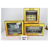 361 Rail King: 30-90021 Smith Brothers Auto Dealership, 30-9023 Yellow/Green Row House, 30-90284 Rolling Rock Lighted Billboard/Operating Lights OB