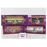 400 MTH: 20-98835 Isaly’s Flat/Pups (Factory Sealed), 20-93524 MTHRRC 2011 NYC Viva La France/Viva L ‘italia 40’ Boxcar, 20-91098 PRR N-8 Caboose/Antenna, 20-97429 NYC 2 Bay Hopper/Load, OB/1 Mailing Carton