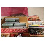 UNCATALOGED: Traylots include O scale buildings; Lionel rolling stock; ZW transformer; accessories; RW transformer; MRC sound system; O22 switches; Plasticville & Marx buildings; Gargraves track; assorted parts; toy vehicles; control board; railroad books; AF track & switches, and much more!