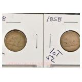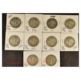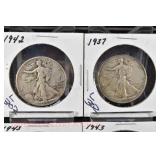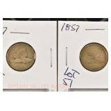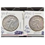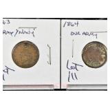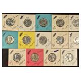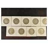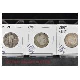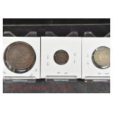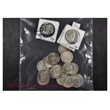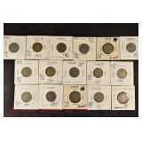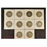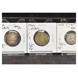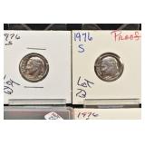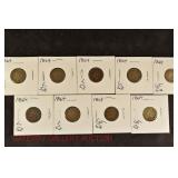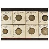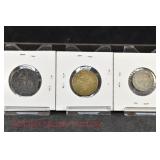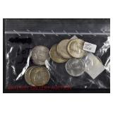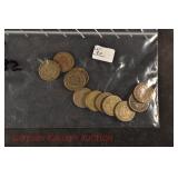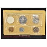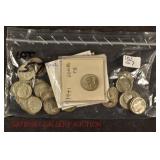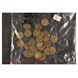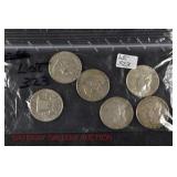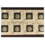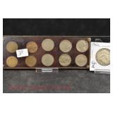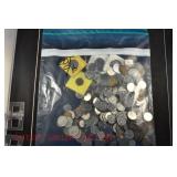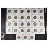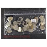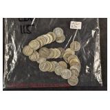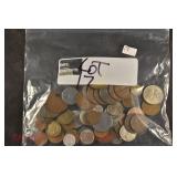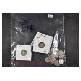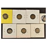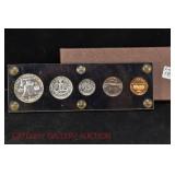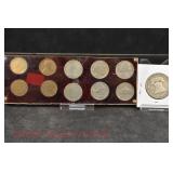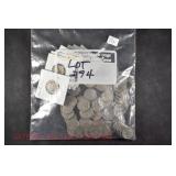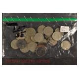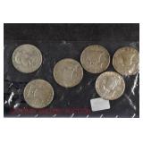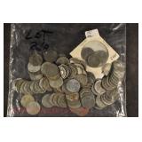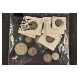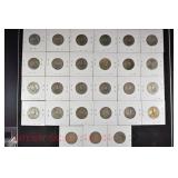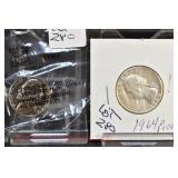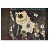 328 Assorted Coins: Jefferson war nickel, 1945-P; buffalo nickel, 1936; Mercury dime, 1945; Roosevelt dime, 1955-S (MS); Philippine 50 centavos, 1944-S, .750 silver; + (4) other foreign coins
