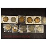 Public Auction Live & Stream Live Online Coins, Currency & Stamps held in Main Gallery Longaberger Baskets, Pottery & Wrought Iron & Lenox China held in Gallery #2 Will sell for several estates at GATEWAY GALLERY AUCTION located at 643 Kriner Rd, Chambersburg, PA on: Monday, October 23 at 3 PM COINS Sold at 5 PM: (328) lots including Gold; Morgan and Peace Dollars; Rolls of silver; Federal Reserve notes; flying eagle cents; proof and mint sets; buffalo nickels; Indian cents; Jefferson nickels; star notes; silver certificates; national currency; foreign coins; Civil War tokens; large cents; mercury dimes; barber dimes, and much more. Scroll down for catalog listing STAMPS sold at 3 PM: US & foreign cancelled, uncancelled. Sheets, catalogs, first day issues, albums, new old stock and more. Scroll down for catalog listing LONGABERGER & LENOX sold at 3 PM: Approx. (100+) Longaberger baskets; variety of Longaberger pottery including plates, bowls, mixing bowls, batter bowl, casseroles, mugs, milk pitchers; Longaberger wrought iron end stands, patio stand, tiered rack etc. Lenox china, Christmas figurines, angel figurines and more. See website for photos and listing. AUCTIONEER’S NOTE: Stamps/Coins sold in Main Gallery by one auctioneer. Will begin with stamps at 3 PM, followed by coins at 5 PM. Longabergers and Lenox sold in Gallery #2 by second auctioneer beginning at 3 PM. Doors open for preview at 1 PM sale day ONLY. Coin catalog on website or can be mailed by phoning (717) 263-6512 or (800) 315-3265 Preview Sale Day from 1 PM TERMS: Cash. Visa/MC/Discover accepted. 15% buyer’s premium discounted to 10% for cash or approved check. Online bidding available on website. Statements made day of sale take precedence. CONDITION & GRADING NOTE: All items sold as-is, where-is, with no guarantee. Buyers are responsible to satisfy themselves as to condition of items. Every effort will be made to assist bidders, however YOU are the sole judge of condition. October 23, 2023 1 (175) Wheat Cents: 1914-1958 1s Priority & Express Mail Stamps: Cancelled; Scots #2541, 20 each; #2544, 100 each; #2543, 12 each; #2540, 20 each; #2544, 9 each; #2394, 4 each 2 (3) Lincoln Cents: (2) 1909; (1) 1909 VDB (VG) (AU) (XF) 2s Assorted Stamps: All stamps mint, uncancelled; 16 full sheets #R733, E23, (2) 1530-37, 1551, 1557, (2) 1572-75, 1633-82, 1632, 3236, 3502, 4748, 5212, plus 2 other to include 1873 24¢ Winfield Scott Treasury stamp, forever stamps, etc., $1413.05 catalog price 3 Assorted Coins: Franklin silver half dollar, 1952 (F); type coins in case, (2) Indians, (2) Lincolns, (2) buffalo, (2) V-nickels, (2) Jefferson nickels 3s American Heirloom US Stamp Album: Cancelled and uncancelled from 1879 and up, including 1912 parcel post, 1925 special handling, 1899 Cuba, Puerto Rico, 1904 Canal Zone, 1804 Hawaii, 1930 Guam & US Occupied Philippines, postal savings mint value $199, Air Mail & hunting permit sections 4 (12) Mint Sets: (3) 1969; (3) 1971; (3) 1972; (3) 1973 4s (2) United Nations Stamp Albums: 1951-1999 uncancelled almost full; 2000-2007 uncancelled almost full 5 (11) Mint Sets: (2) 1969; (2) 1971; (2) 1972; (2) 1973; (3) 1974 5s (2) World Christmas Stamps: Uncancelled; Aitutaki - Luxembourg, Macedonia - Zambia 6 (5) Mint Sets: 1970 6s US Stamps: Cancelled; Catalog Price $975.95; 1870-2010, #159, 161, 205, 235, 236, 239, 246, 296, 391, 413, 475, 146, 215, 232, 325, 380, 573 & others 7 Buffalo & Jefferson Nickels: (12) buffalo nickels, 1914-1937; (82) Jefferson nickels, 1938-1964 (7 war nickels) 7s Scotts International Postage Stamp Album: 8th Edition, 1886, pages fragile 8 (7) Eisenhower Silver Dollars: (3) 1971-S; (3) 1972-S; 1973-S (UNC) 8s File Box US Stamps: cancelled, 1870-1965 (147-1289) 9 (6) Eisenhower Silver Dollars: (2) 1971-S; (2) 1972-S; (2) 1973-S (UNC) 9s File box US Stamps: cancelled, 1973-1990 (1489-2479) 10 (7) Proof Sets: (2) 1973; (5) 1974 10s US and US Airmail Stamps: cancelled 1990-2022; #1291-1487, 1965-1973; C12-C150; 1853; etc. 11 (3) Eisenhower Dollars: 1973-S (Proof) 11s 1st Day Covers: Man's First Landing Moon; Great Historic Stamps of the World; 1st day cover Bicentennial Era The American Dream & souvenir show cards; 1st day covers Historic Stamps of America 12 20 Francs: 1950, 4 plumes (VF-XF) 12s Album of World Scouting Stamps: Uncancelled and Cancelled, Afghanistan - Upper Volta 13 Canada 6-Coins Flat Pack: 1867-1967, PL 13s US Mint Stamp: Uncancelled sheets, blocks, half sheets, singles, etc. (partial total catalog value $850.00) 14 Silver Medallion: 1973 Skylab, .999 fine silver, #622, Wittnauer Precious Metals 14s Statesman Deluxe Album: Uncancelled and cancelled, US Stamps 1861-1925, international 1800s-current, Christmas stamps 1928-1968 (total stamps 9,890+) 15 (6) Foreign Coins: 1854 1¢ Upper Canada bank token (F); 1891 1 penni Finland (XF); 1892-A 20 pfennig German (F); 1895 5 centimes Belgian (XF); 1962 1 shilling Austria (UNC); 1962 5 shilling .640 silver Austria (XF-AU) 15s US Liberty Stamp Album: US Stamps 1853-1993, oldest stamp is envelope stamp, cancelled and uncancelled 16 (8) Foreign Coins: 1951-B 1/2 Fr. Swiss silver (VF-XF); 1939-B, 1944-B, 1952-B, 1957-B 1 Fr. Swiss silver (VF+) (F+) (XF+) (AU+); 1932-B 5 Fr. Swiss silver (VF); 1933-D sixpence silver Great Britain (VG); + 10¢ Canada silver, no date 16s US Liberty Stamp Album: US Stamps 1869 and up, oldest stamp is 1853 envelope, cancelled and uncancelled 17 Assorted Coins: all foreign 17s Voyager Stamp Album: Aden-Fujeira, cancelled and uncancelled, loaded with stamps 18 (8) Proof Sets: (3) 1969; (4) 1970; (1) can't read date **Note: all have been in a fire 18s Voyager Stamp Album: Gabon-Nyassa, cancelled and uncancelled, loaded with stamps 19 Tokens, Bicentennial Medals, Foreign Currency: 10 dix francs bank of Maroc, signed by TWA Capt. Fred N. Ward & others; 1965 special mint set 19s Voyager Stamp Album: Oman-Zimbabwe, cancelled and uncancelled, includes Turkey 1958-60 complete mint set of 134; Wo