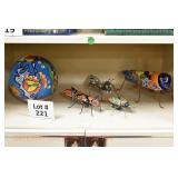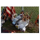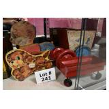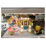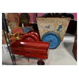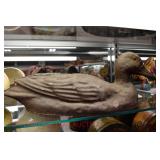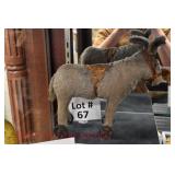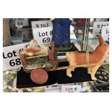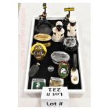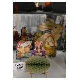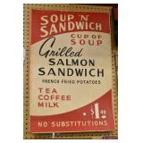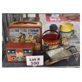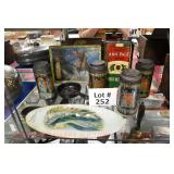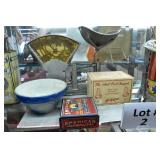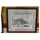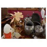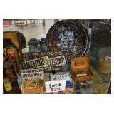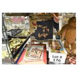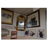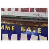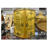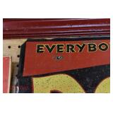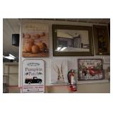 Wall Catalog 1w (5) Nutcrackers: (2) soldiers; carpenter; potter; doctor? 2w Vintage Kitchen Utensils: mostly wooden, includes rolling pin, mashers, spatula, tin cookie cutter, all in wooden wall holder 3w Tin Tea Bin: mirrored front, opens at top and at bottom front, has some dents and paint wear 4w Tole Painted Tray: fruit & leaves, paint loss, rusting 5w Advertising Bucket: Keppel's Hand Rolled Cocoanut Cream Eggs, swing handle, some staining to sides 6w Vintage Santa Light: plastic, approx. 16.5" tall, some minor paint scratches 7w Bose Wave Music System: w/remote & instructions 8w Miniature Cabinet: (8) drawers, approx. 11.5" x 10" x 4.5", some minor paint wear 9w Advertising Counter Display: Minter's Candies "Tickle the Taste", glass window lift tops, some paint loss rusting 10w Art Glass Bottle/Decanter: large, yellow glass, approx. 26" tall w/stopper 11w Pastel Drawing: signed Mary Marshall, landscape scene, framed 12w Advertising Sign: "Glove" Brand Rubbers, wooden, minor paint wear, sign has some chipping, approx. 35.25" x 13.5" 13w Needlework: framed 14w Currier & Ives: "Little Manly", framed, leaf decorations at each of the corners 15w Framed Print: little kids & dog, framed, has tear at one edge 16w Keith Rocco Limited Edition Print: signed, 352/500, triple matted & framed 17w Rod Arbogast Limited Edition Print: signed, 171/580, double matted & framed 18w Billy Jacobs Print: "Dashing Through the Snow", framed 19w (2) Lead Crystal Vases: Nachtmann bleikristall; one other 20w Vera Bradley Travel Bag: red paisley print, can be carried or has handle to roll behind 21w Woven Basket: approx. 12" diameter, some minor wear along edge 22w Vera Bradley Travel Bag: black & white flower print, can be carried or has handle to roll behind 23w Bose Wave Music System: (2) remotes, instruction booklets, connect kit 24w Decorative Shore Bird: approx. 19" tall 25w Coca-Cola Tray: has paint chips and minor rusting 26w (2) Wooden Stools: both have paint loss 27w (2) Vintage Sifters: the larger one is 18" and the smaller one is 11 1/2" 28w Tea Tin: has paint loss and some rust 29w Advertising Sign: Chicken in the Basket, cardboard, chipping along the edges, bottom edge has some separation, sign is wavy, discoloration 30w Laura Shindle Print: Mercersburg Square, 2002, framed and matted 31w Advertising Sign: Hershey's Ice Cream, metal, 10 places for flavors, has minor scratches 32w Robert Morrow Limited Edition Print: signed, 27/150, called 'One of the Barns at Renfrew, framed and matted 33w Advertising Sign: Soup "N" Sandwich, cardboard, has discoloration, chipping at the top, wear to bottom edge, wavy 34w Charles Stoner Print: McKinstry's corner, Christmas 1895, signed, framed and matted 35w Advertising Sign: popsicle, metal, has some bends and dents, 3 holes, scratches, rusting 36w Advertising Sign: Coca-Cola, metal, rusting, dents, bends, scratches, damage to bottom edge 37w Advertising Sign: First-Aid, metal, dents, paint loss, rust, scratches 38w Advertising Sign: Hershey's Ice Cream, metal, 10 places for flavors, has 6 paper flavor inserts, minor paint wear and scratches 39w Advertising Sign: Pepsi, metal, rust, paint loss 40w Advertising Sign: Tri-State, metal, left bottom corner damaged, rust, paint loss, dents 41w Advertising Sign: Bubble Up, metal, paint loss, rusting, scratches 42w Advertising Sign: Stroehmann Bread, metal, paint loss and rusting along edges, discoloration 43w Vintage Child's Hooded Fur Coat: made by Carvelle, white fur, has some wear to inside of jacket near zipper, says 6 44w Advertising Sign: Sunbeam, metal, has some paint loss, rust, approx. 54 1/2" tall bottom edge has some damage 45w Advertising Sign: Breyer's Ice Cream, metal, paint loss, rust, dent on left side, discoloration 46w Advertising Sign: Mule-Hide Roofs, metal, has some discoloration, dents, scratches, rust, approx. 35 1/2" long 47w Advertising Sign: Lemmy Lemonade, metal, rust, paint loss, bottom left corner has damage 48w Advertising Sign: Cramer's York Fertilizer, metal, paint loss, rust, one small dent 49w Advertising Thermometer: Frostie Root Beer, paint loss, rust, fahrenheit and celsius, appears to have accurate temperature reading 50w Advertising Sign: Morton Salt, metal, dents, hole in it, rust, paint loss 51w Advertising Sign: Necto, metal, holes in it, paint loss, rust, has slight bend 52w Advertising Sign: Feed Store, has some paint loss, scratches, and rust along edges 53w Advertising Sign: 2 in 1 Shoe Polish, paint loss, rust, paint chips, the top has some damage 54w Star Wars Chromart: Darth Vader 55w Dale Gallon Print: "Tomorrow…We Must Attack Him", framed & matted 56w Wild Horse Print: large, framed & matted 57w Charles Stoner Limited Edition Print: "Christmas at Irwinton near Mercersburg (c. 1820)", signed, 64/150, framed & matted 58w Stained Glass: lily, wall hanging 59w Quilt: small tear, minor discoloration 60w Quilt: modern 61w Wool Blanket: Northern Ohio Blanket Mills, Cleveland OH, has some tears, roughness/wear at edges 62w Wall Clock: enamel face, pendulum, key, decorative columns, glass sides & door 63w Wall Clock: enamel face, weights, glass door & side panels, black details, pendulum 64w Taxidermy: bass, mounted to wood plaque w/rope edge, fly in mouth 65w Julia Longacre Limited Edition Print: "Christmas in Downtown Allentown", 54/200, signed, framed & matted 66w Dale Gallon Limited Edition Print: "For God and Our Right", 1104/1211, signed, framed & matted 67w Wall Clock: French Provincial style, enamel numbers on face, sunburst pendulum, metal details, cherubs at bottom, missing glass front 68w Wall Clock: enamel face, added numbers on face for 24 hours, glass side panels & door, key & pendulum 69w Wall Clock: enamel face, glass side panels & door, key & pendulum 70w Dale Gallon Limited Edition Print: "Pride of Erin", 1210/1500, signed, framed & matted 71w Wall Clock: metal face, 6-pane beveled glass door, columns on sides 72w Dale Gallon Limited Edition Print: "Little R