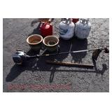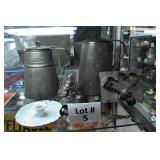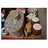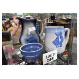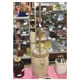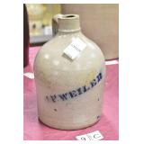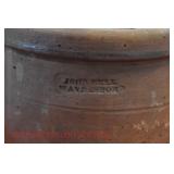 Crocks Catalog – Sold at 4pm 1c (3) Pcs. Stoneware Pottery: blue decorated pitcher; small jug; double handled jar (no names, all leaf decoration) 2c C.W. Sisson 2-Gal. Jug: Glen Falls NY, blue decorated, minor spider crack in glazing on front 3c Stoneware Bed Warmer: has stopper, chipped around the spout 4c Blue Decorated Crock: flower decoration, 2 chips on rim 5c John Bell Waynesboro Crock: redware 6c Stoneware Crock: blue decorated flowers, hairline cracks through on sides 7c Binghamton NY Stoneware Jug: blue decorated, minor chipping at spout, hairline crack on handle 8c Blue Decorated Crock: stoneware, chip on base (possibly in making) 9c F. Weiler Jug: stoneware, minor chipping at spout, chip at base, blue decorated with name 10c Stoneware Churn: brown glazed, wooden churn, chipping around the top 11c Stoneware Crock: blue decorated flower on front 12c Double Handled Crock Churn: blue decorated, wooden churn, hairline crack at base, some chips around rim 13c Stoneware Pitcher: minor discoloration 14c (2) Jugs: brown glaze at top, one has cork and is chipped at base 15c (2) Fruit Jars: redware, has some chips to glazing on one, both have lids 16c Redware Crock: possibly signed 17c Stoneware Jug: bicentennial decal on front, hairline on handle, chips at spout & base 18c (2) Jugs: brown glazed, both have stoppers 19c Double Handled Crock: blue decorated, chip on side 20c (2) Redware Crocks: one is chipped around base; other looks like it was green painted