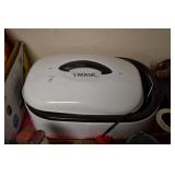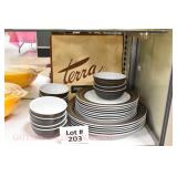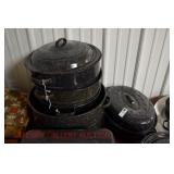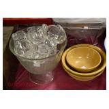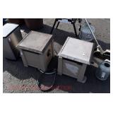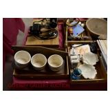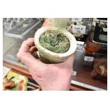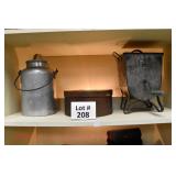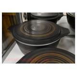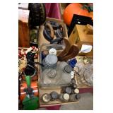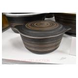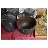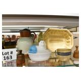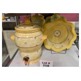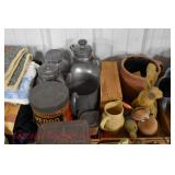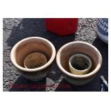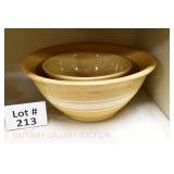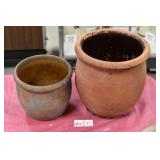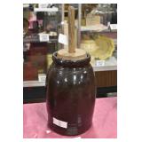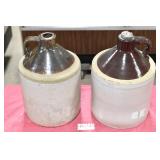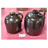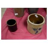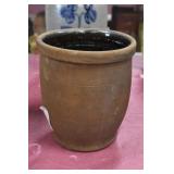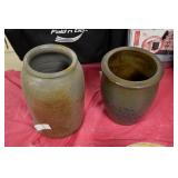 21c (2) Fruit Jars: small stoneware, no lid; single handled, brown band, minor nicks at lip, no lid