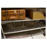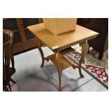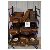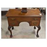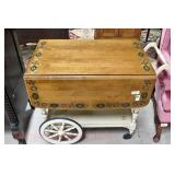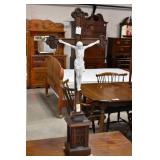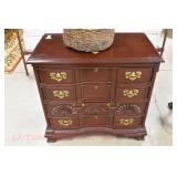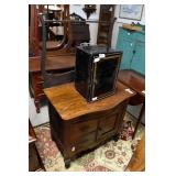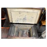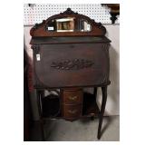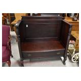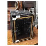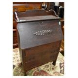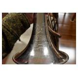 Furniture Catalog 1f Flour Barrel: wooden rings 2f Monitor Ice Box: oak, 1 door, lift top 3f Medler Co. Biscuit Box: Philadelphia 4f Bench: original red paint 5f Antique Dress Form w/Dress & Accessories: early 1910s cotton dress, some damage to one shoulder; vintage straw hat; vintage umbrella; dress form has cast iron base, antique 6f Child's Rocker: cane seat & back 7f Daisy Butter Churn: no. 40 8f Metal Putman Dye Tint Case: litho is really nice on front & back, one side shows some paint & letter loss, one pack of dyes inside 9f Soft Wood Dry Sink: drawer, 2 doors, refinished 10f Autumn Rug & Runner: rug measures approx. 24" x 36"; runner measures approx. 24" x 70" 11f Alabaster Lamp: white 12f Oak Stand: 1 shelf, refinishes 13f Stand: round, refinished 14f Advertising: JS Ivan Cheese Bits tin, fading, paint loss 15f Advertising: Ivans Buffet Wafers tin, minor paint loss 16f Advertising: Leidig Hard Candy tin, some paint loss 17f Enamel Pail: spalling, marbleized 18f Firkin: yellow painted 19f Step Back Cupboard: soft wood, 1 drawer over 2 doors 20f Rug: approx. 42" x 63" 21f Coat Rack: modern, metal 22f Emenee Gene Autry Guitar: w/chord selector, in original carrying case/box 23f Mahogany Buffet: bow front, 1 door on left, drawer over drawer, 2 pull out drawers on right side, Hepplewhite style 24f Pair Candle Holders: electrified, sconces w/etched shades, wood bases 25f Gingerbread Clock: Waterbury, w/alarm 26f Sideboard: oak, beveled edge mirror, candle stands, w/dolphin head back, 2 middle drawers, 2 leaded glass side doors, 1 drawer, refinished 27f Corner Cupboard: 2 doors over 2 doors, soft wood, painted 28f Basket: woven, some minor damage, oak slats 29f Dresser Throw: similar to button quilt, approx. 20" x 36" 30f Baker's Cabinet: 2 pcs, drawers on top, side doors, shelf over shelf, pull out bakers, board, 2 lower drawers & doors, + bin, refinished 31f Tilt Top Stand: Chippendale style, mahogany, bird cage 32f Dinette Table & Chairs: 6 chairs, 1 board, Ethan Allen 33f Step Back Cupboard: 2 pcs., Ethan Allen, 3 doors over 2 drawers, over step, over 3 over 3 34f Glass Vase: etched flowers, pressed pattern 35f Rug: Cathy Ireland, approx. 7'9" x 11'4", European Country pattern 36f Basket: single oak slat handle 37f Hardin Break Front Chest: cherry, 4 drawer, decorative details 38f Crucifix: oak, porcelain Jesus, approx. 37" tall, 16" wide 39f Chippendale Desk: mahogany, claw & ball feet, 1 over 2 40f Rocking Horse: some paint loss 41f Single Bed: box spring & mattress (Dutch Craft signature series) 42f Sleigh Runner Rocker: padded seat & back 43f Bed: w/box spring & mattress (Sealy Posturepedic) 44f Advertising: Hill Cracker/Cake box, some loss to paper labels 45f Marble Top Sideboard: walnut & burl, mirror back, candle shelves, marble top, 2 drawers over 2 doors, refinished 46f Wash Scrubber: wood 47f Step Back Cupboard: 1 pcs., 2 doors, over shelf, 2 drawers over 2 doors 48f Medicine Cabinet: hanging, painted white 49f Mahogany Table: 1 drawer, claw foot 50f Slag Glass Lamp: pot metal base 51f Mantel Clock: metal face, mother of pearl inlay, garden design 52f Slag Glass Lamp: pot metal base 53f Dresser w/Mirror: depression era, 3 drawers, mirror shows some silver deterioration 54f Pine Stand: 1 drawer, some repairs to leg and drawer 55f Trombone: Super Tone, w/carrying case, case is rough 56f Dinette Table & Chairs: 4 boards, pads, 2 armchairs, 2 straight chairs, PA House 57f Rock Maple Bed: w/box spring & mattress, full size 58f Wash Scrubber: glass 59f Oak Sideboard: beveled edge mirror, candle stand, 2 drawers over 1 drawer over 2 doors, side door w/3 shelves 60f Century Highboy: mahogany finish, modern 61f Queen Anne Armchair: upholstered 62f Mahogany Bench: pineapple decoration, turned columns, some finish loss, 1 pull handle missing 63f Basket: woven 64f Tea Cart: Ethan Allen, Hitchcock style, 1 missing piece, drop leaf, 1 drawer 65f Wingback Chair: mauve 66f Longaberger Hamper: w/lid, combo 67f Oak Stand: 2 shelves, square, arched legs, refinished 68f Wooden Bucket: red paint 69f Pie Cupboard: 2 doors, over 1 drawer, tin panels on ends & front, refinished 70f Advertising: Livingston Seed Co box 71f Jelly Cupboard: splash back, 2 drawers, 2 doors, refinished 72f Thomasville Triple Dresser: 3 over 2 over 2, w/mirror 73f (2) Night Stands: 2 drawers 74f Oak Slant Front Desk: pigeonholes inside, 3 drawers, 1 pull needs put back on 75f Mantel Clock: Smiths Endfield 76f Oak Washstand: w/towel bar, refinished 77f Firkin: green & red paint 78f Mahogany Hepplewhite Stand: drop leaf, 1 drawer, matches 82f 79f PA House High Chest: 2 over 3 over 2 over 1, bracket foot, cherry 80f Kraemer Tin File Box: some paint loss, w/key 81f Oak Washstand: w/towel bar, 1 drawer over 1 door over 2 side drawers, serpentine front 82f Mahogany Hepplewhite Stand: drop leaf, 1 drawer, matches 78f 83f Rug: classic collection, Persian Panel, 7'6” x 9'6" 84f Slant Front Book Case Secretary: oak, 2 doors, 2 shelves, pigeon holes, 3 drawers, molding loose on bottom, Spanish/Mediterranean style 85f Princess Oak Dresser: beveled mirror, 2 over 1, serpentine front 86f Hummel Lamp: boy & girl under tree, w/shade 87f Oak Sideboard: ornate top, 2 beveled mirrors, one mirror missing, 2 pcs, step back bottom, 2 over 1 over 2, butter print pattern on door, sides, front, refinished 88f Cottage Dresser: w/mirror, 2 pull out bonnet drawers, marble center insert, refinished 89f Ladies Slant Front Desk: pigeon holes, files, center box drawers, part of finial work is damaged 90f Curios Cabinet: 3 glass shelves, 1 bottom drawer, modern 91f Jelly Cupboard: green paint, paint chipping & wear 92f Oak Bookcase: triple glass door, 4 shelves per section, all 1 piece 93f Table Lamp: brass, adjustable 94f Empire Chest: 4 drawer, refinished 95f Basket: double ring handles 96f Spice Box: refinished 97f Crock Bench: painted, mortised ends, early 98f Drum Table: modern 99f Lay-Z-Boy Sofa Bed: 2 cushion 100f Drop Leaf Stand: mahogany, s