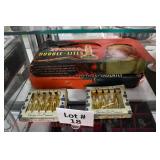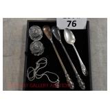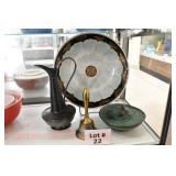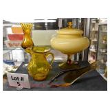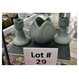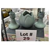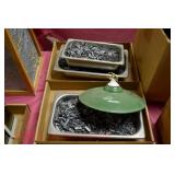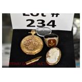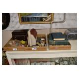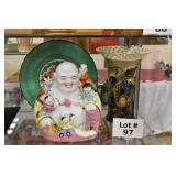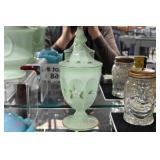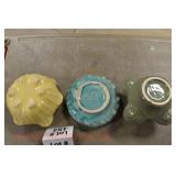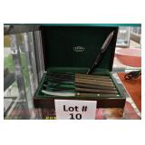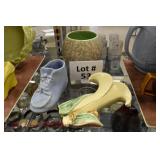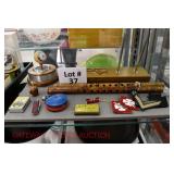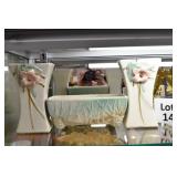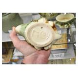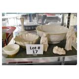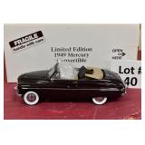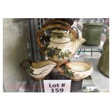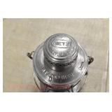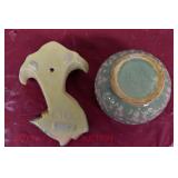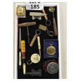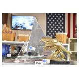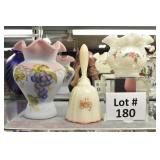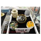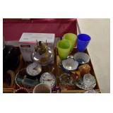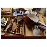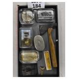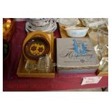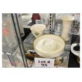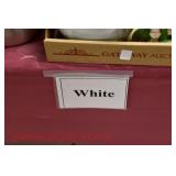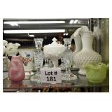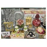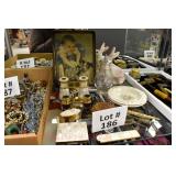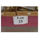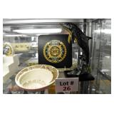 Showcase Catalog 1 Culver Ltd. Glass Tumblers: set of (6) green and gold checkerboard 2 (2) Danbury Mint Lena Liu Figurines: The Iris Princess; The Plum Blossom Princess 3 Pair Haeger Pottery Figurines: Gazelle, yellow glaze, 14" 4 (2) Danbury Mint Lena Liu Figurines: The Rose Princess; The Chrysanthemum Princess 5 (4) pcs. Vintage Art Glass: amber crackle glass pitcher; amber goblet w/clear twist stem; large covered center bowl with amber stem; fish 6 (5) pcs. Porcelain China: Danbury Mint Copenhagen porcelain vase; Danbury Mint Rosenthal Rose vase; Hustchenreuther China Rose collector plate; Boehm miniature rose collector's plate; Anna Perenna plate 7 (3) Sets of Binoculars: selsi opera glasses w/mother of pearl accents; Bushnell 6x25 field; Magna 8x30 - all have carry cases 8 (4) Vintage Stuffed Animals: Dream Pets mouse w/hand bell; Kamar red dachshund; Kamar mouse; pink leather mouse (possible dream pet but no tag) 9 (5) pcs. Danbury Mint Porcelain China: Noritake vase; Germany vase; Pickard bud vase; Royal Albert flower vase; Royal Tara vase 10 Cutco Knives: (7) no. 47 w/case; (1) 1720 11 Vintage Westclox Alarm Clock: Sphinx 12 CASHS Color Day & Book: 1968 CASHS beanie hat & pennant; Christy by Catherine Marshall signed by author, HB, 1967, DJ 13 Numechron Tymeter: Model 851 14 (6) Vintage Christmas Balls: (3) 10" teardrop style; (3) 8" teardrop style 15 Vintage Christmas Ornaments: (5) boxes of teardrop style ornaments; (2) boxes of Mr. Christmas glass birds 16 California Pottery: Large divided server w/floral center (chips on flower petals) # 17 Goebel & Lenox: Goebel Nativity Joseph, Mary & Jesus figurines; Lenox center bowl, nut dish, bud vase, candy dish 18 Christmas Bubble Lights & Ornaments: (2) boxes of shiny brite ornaments (1 box missing 1 ornament); (2) boxes Noma bubble lights 19 Danbury Mint Ornaments: (2) boxes of the Songbird Christmas Ornaments collection set of (12) ornaments (1 box missing 1 ornament) 20 Bookends: set of polished mineral bookends 21 Pyrex Mixing Bowls: Large red; medium red 22 Metalware & Porcelain: brass hand bell (made in India); metal pitcher (made in Israel); metal covered candy; large Porcelain bowl 14.25" dia. 23 Glass & Metal-ware: lead crystal center bowl; pink depression basket; green goblet w/clear twist stem; large blue glass pedestal vase; copper gravy boat warmer by coppercraft guild; silverplate wine bucket; juice decanter (no lid) 24 Resistol Fedora Hat: Beaver, kitten finish, 7 1/8 size, from Ray Hays Shop Chambersburg w/orig. box 25 (12) Danbury Mint Lena Liu Eggs: The Butterfly Garden porcelain egg collection - w/boxes 26 Decoratives: brass dolphin figurine; ashtray; Aztec sun dial wall plaque 27 Replica Wall Street Stock Ticker: w/glass dome, painted faux gears, tick tape glued to base 28 Set of (6) Cocktail Glasses: crystal 29 (3) pcs. Van Briggle Pottery: pair tulip candle holders 4"; tulip vase 4" 30 (4) Paperweights & Desk Clock: Tilso paperweight; Italy marble paperweight; France egg paperweight; floral paperweight; Endura 7 jewels brass & glass desk clock (glass center surround cracked in 2 places) 31 Decoratives: (2) Hummel figurines (feeding time & 1 other); Baldwin brass candle holder w/glass shade; Stangl pitcher; alabaster egg; amber salt dip 32 Costume Jewelry: brooches, earrings & sets 33 Gold Filled Jewelry: necklaces, bracelets, Lady Elgin wristwatch, desk pen, rings, pins / brooches, cufflinks 34 Sterling: (2) money clips; salt dip; belt buckle; (2) spoons; pin; buttons; pendant; stick pin; condiment spoon 35 10K, 14K Jewelry: Girard Perregaux ladies wristwatch; cameo necklace; pin; pair earrings; bracelet 36 Assorted Traylot: Elgin closed face pocket watch; fountain pen; Bakelite screwdriver; eye glass screwdriver; Zippo Barcroft table lighter (personalized); Lady Sunbeam shaver master w/orig. box; UPS car vs truck RC set; Amway La Collection Classique Paris Fleur Bleue in orig. box (never opened) 37 Assorted Traylot: desk pen set; Ernest Borel golf ball trophy desk clock w/plaque; beer stein tape measure; (2) flutes; military patches & rank; pair wood castanets w/bell; lighter; pocket knife; tin 38 (2) Fedora Hats: Kevin McAndrew w/boxes 39 Danbury Mint Diecast Car: 1953 Buick Skylark w/orig. box 40 Danbury Mint Diecast Car: 1949 Mercury Convertible w/orig. box 41 Danbury Mint Diecast Car: 1932 Cadillac V-16 Sport Phaeton w/orig. box 42 Thailand Flatware: (7) forks, (8) spoons, (8) knives, carving set, serving pieces + set of (6) small spoons in orig. box 43 New Mexico Pottery: pot approx. 8" tall x 9.5" dia. 44 (2) Asian Parasols: child's painted silk; adult painted paper 45 Bjorn Wiinblad Studio Pottery: 1956, oval tray 13" long x 10" wide 46 (4) pcs. Fenton & Carnival Glass: Fenton amethyst flower vase; green carnival grape pattern bowl; cobalt figural bell; marigold basket w/open weave edge 47 (2) pcs. Fenton Glass: hand painted footed vase w/opalescent edge; jack in the pulpit vase, hand painted 48 Fenton Glass: hand painted ruby glass bowl (fishbowl style) 49 Art Glass Pedestal Bowl: multi-faceted orange bowl with metal base 50 (4) pcs. Art Glass: Rossi glass purple vase w/clear ribbon edge; green glass vase; opalescent bottle; blown cobalt water pitcher 51 (2) pcs. McCoy Pottery: planter w/tulips; acorn basket planter 52 (4) pcs. McCoy Pottery: small brown glazed teapot; (2) green pitchers; blue milk pitcher 53 (3) pcs. McCoy Pottery: lily wall pocket; baby shoe planter; round bowl planter 54 (4) pcs. McCoy Pottery: double handle vase; shallow oval leaf planter; rectangular yellow geometric planter; flower frog ring 55 Vintage Kitchen: plastic juice pitcher Burrite; plastic juice pitcher lustro-ware; Thermos brand thermos; shel-glo plastic water bottle; red plastic deco pattern pitcher 56 PRR Dining Car Serving Pieces: oval relish Shenango; (3) creamers; (2) hot water pitchers 57 (19) PRR Glasses: set of (5) 4.5" tumblers; set of (6) 3.25" tumblers; (8) 2.25" glasses 58 B&O Lantern Globe: red globe with 
