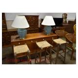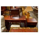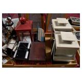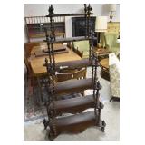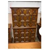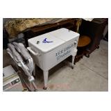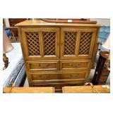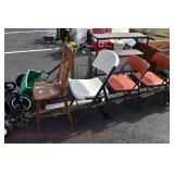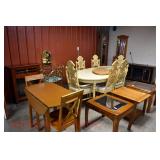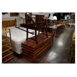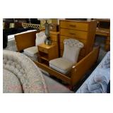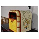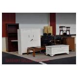 Furniture Catalog 1f Slot Machine: Big Zangus, has Asian & English markings 2f Oriental Runner: 2'2" x 8', color is ivory blue 3f Floor Lamp: decorative tile on the post, torch style 4f Victorian Sofa: scalloped back, carved details 5f Figural Clock: cast metal, cherub holding clock 6f Pedestal: lift off top, carved details 7f GWW Style Lamp: matching base & shade, electrified 8f Victorian Marble Top Stand: Eastlake style, white marble 9f Bow Front Curios Cabinet: glass sided, single glass door, 4 glass shelves, lighted, claw feet 10f Davos German Sled: large size 11f Figural Table Lamp: boy with rose bush, heavy 12f Buffet/Server: paint decorated 13f Davos German Sled: medium size 14f Mink Cape: Harry K. Ott, Exclusive Furs, Phoenixville PA, embroidery inside, has pockets 15f Coat Rack: wood, metal hooks, one hook is broken 16f Pair of Table Lights: milk glass base w/cherub heads, each lamp has 4 cherub heads embossed w/scroll work all around them, replaced shades 17f Corner Cupboard: 2 pcs, 9-paned, 1 drawer over 2 blind doors 18f Eterge: 6-shelf, spool columns 19f Lane MCM Table & Chairs: 6 chairs, 2 captains, tuxedo inlay, 2 extra boards, pads, matches 20f, 21f, 22f 20f Lane MCM Butterfly Bookcase: tuxedo inlay, open gallery at top, glass sliding door front, shelves, matches 19f, 21f, 22f 21f Lane MCM Credenza: tuxedo inlay, 6 middle drawers 6 blind doors, matches 19f, 20f, 22f 22f Lane MCM Serving Cart: tuxedo inlay, 1 drawer, on wheels, matches 19f, 20f, 21f 23f Pair MCM Living Room Chairs: floral upholstered fabric, slight discoloration along top edges 24f MCM Table Light: vintage, brass gazelle, w/shade behind him, shade has burn mark from light bulb 25f Lane MCM Round Coffee Table: tuxedo inlay, has knick in veneer, one drink ring 26f Lane MCM End Table: tuxedo inlay 27f MCM Pair of Wingback Chairs: Style Upholstery, green upholstery 28f MCM Table Lamp: brass & wood, original shade 29f Oriental Rug: wool, approx. 8.5' long x 5.5' long 30f Electronic Jukebox: model 999, made by Lindstrom Corp., Bing Crosby Jr. Juke, plastic front w/dial, some damage to one panels, rust at top, has peter pan 45, needle is loose 31f Enclosed Double Bookcase: arched panes on door, arched side panes, claw foot, column edges, 2 shelf 32f Goat Wagon: enclosed wood sides 33f 2-Drawer End Stand: glass pulls 34f Pair of Table Lamps: genie lamp bases, original shades 35f Tilt Top Table: claw & ball foot 36f Pair of PA House End Stands: 3-drawer, some finish wear at feet 37f Bear Rug: face has glass eyes, open mouth, tongue, has claws, some damage to mouth 38f Large Table Lamp: ceramic vase style, brass base, original shade 39f American of Martinsville Bed: headboard, rails, mattress, box spring, Serta perfect sleeper, queen size, matches 40f 40f American of Martinsville High Chest: 6-drawer, matches 39f 41f Victorian Slipper Chair: carved rose back, pink upholstery 42f Mantel Clock: Seth Thomas, key wind 43f Drop Leaf End Stand: 2 drawers, on rollers 44f Pair of MCM Living Room Chairs: orange upholstery 45f Vintage TV Lamp Planter: mermaid w/seashell 46f Coffee Table: ceramic tile top, 2 doors, open shelf, missing one drop pulls, some minor finish wear at bottom and one side 47f Mantel Clock: Hermle, key wind 48f Dresser: glove box on top, 4-drawer 49f Beachley MCM Kidney Sofa: floral upholstery, nice condition 50f Pair of Bedroom Chairs: upholstered 51f Tall Table Lamp: heavy ceramic & metal, w/original shade 52f Mantel Clock: key wind 53f Mantel Clock: Waterbury, key wind 54f Parlor Lamp: matching shade & base, chimney 55f Drexel MCM Bed: headboard, foot board & rails, suite is 56f - 60f 56f Drexel MCM Double Dresser w/Mirror: suite is 56f - 60f 57f Drexel Vanity Desk w/Mirror: double pedestal, suite is 56f - 60f 58f Drexel High Case: 5 drawer, suite is 56f - 60f 59f Drexel Dresser: 3 drawer, suite is 56f - 60f 60f Drexel Nightstand: 1 drawer w/2 open shelves, suite is 56f - 60f 61f MCM Arm Chair: w/cushions, cane sides, w/flower details, heavy 62f Pair of Child's Chair: club chair style 63f MCM Bed: headboard, rails, Serta mattress, box spring 64f Chippendale Style Highboy: claw & ball foot 65f Pair Table Lamps: candelabra style, modern 66f Davos German Sled: medium size 67f Drexel Triple Dresser: has mismatched mirror, suite is 67f - 69f 68f Drexel Armoire: suite is 67f - 69f 69f Drexel Nightstands: 2-drawer over 1 door, suite is 67f - 69f 70f 4-Drawer Stand: faux bamboo 71f Flexsteel Room Saver Sectional Sofa: w/recliner on either end, aquamarine blue 72f Oriental Rug: 4.5' x 2.5' 73f Table Lamp: pineapple, glass & metal 74f End Stand: 2-door shelf 75f MCM Sewing Machine & Cabinet: Viking Husqvarna, 4-drawers, some accessories 76f Mantel Clock: deco style, key wind 77f Dresser w/Mirror: 2 drawers, over 4 drawers, claw foot 78f MCM RCA Stereo: Victor New Vista, AM/FM radio, turn table, amplifier, built in speakers, w/headphone jack 79f Corner Cupboard: 12-pane, missing 1 glass pane, one cracked pane, glass is original, 2 pcs, 1 drawer over 2 blind doors 80f Pair Marble Top End Stands: white marble, 1 drawer over 1 door 81f Loveseat Recliner: brown suede 82f Longaberger: work around basket w/P, wrought iron stand 83f Oriental Rug: 3'x6', wool |