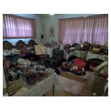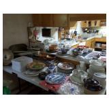 | ENTIRE HOUSEHOLD OF GRANDMA'S TREASURES AND COLLECTIBLES. VINTAGE AND ANTIQUES ALONG WITH ALL OTHER REGULAR HOUSEHOLD ITEMS. CRYSTAL, CHINA SETS, LARGE TEACUP COLLECTION, GLASSWARE, MILK GLASS, RUBY GLASS, ALL KINDS OF COLORED GLASS, POTTERY, PIONEER FLOOR SPEAKERS, ELECTRONICS, CARPETS/RUGS, CHANDELIER AND OTHER LIGHT FIXTURES, LARGE GATELEG TABLE, FORMAL DINING TABLE, BUFFET, CHINA CABINET, KITCHEN TABLE, SIDE TABLES, PLANTS, TOOLS, PATIO FURNITURE, EVERY TYPE OF KITCHEN ITEM, APPLIANCES, WASHER, DRYER, MICROWAVE, 2 REFRIGERATORS, FREEZER, ALL TYPES OF SMALL APPLIANCES, TONS OF VINTAGE LINENS, FURS, HANDBAGS, ART SUPPLIES, SEWING, LOTS OF KNITTING, BEDDING, KING SIZE BED, HEADBOARD, ROCKING CHAIR, OTHER CHAIRS, BOOKS, STERLING, ARTWORK, MIRRORS, AND TONS OF OTHER STUFF! |