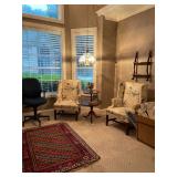 Beautiful home off Memorial with quality furnishings includes Whirlpool side by side refrigerator with ice & water in door, upright freezer, top freezer refrigerator, Kenmore washer & dryer, New Serta Twin mattress sets with matching headboars, in white wicker bedroom furniture includes bed-2 night tables-chest-dressing table with stool, antique pump organ, wash stand, Large dining room table & 8 chairs, pair wingback chairs, pair French parlor chairs, lamp tables, Leather settee, desk chair, lateral file cabinet, 4 door file cabinet, white metal kitchen table & chairs Fitz & Floyd, Books, Records, CD-DVDs, signed & numbered prints Christmas & Holiday decorations Ladies clothes, scarves, shoes, purses and Mens golf shirts, tee shirts, golf hats, Tuxedo, ties, belts, jewerly patio table & chairs, bbq, plants |