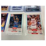 1986-87 Fleer Basketball Stickers Complete Set w Michael Jordan Rookie Sticker. Complete 1-11. The key cards have been graded as follows: PSA 6 Akeem (Hakeem) Olajuwon, Isiah Thomas, Julis Erving Dr. J, Magic Johnson. PSA 5: Michael Jordan Rookie, Patrick Ewing. |