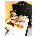 - Are modern twin beds with black and jammed headboards, queen size bed, and frame with headboard, all kinds of linens