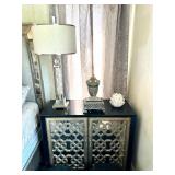 - Sideloading curio cabinet with silver leaf paint